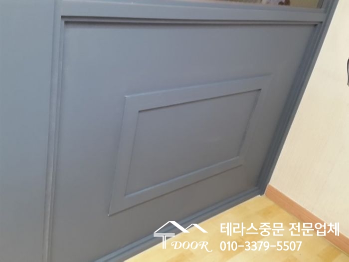 4. 딤 그레이칼라 ㄱ자파티션중문 3연동도어 망입유리 설치 사례입니다.