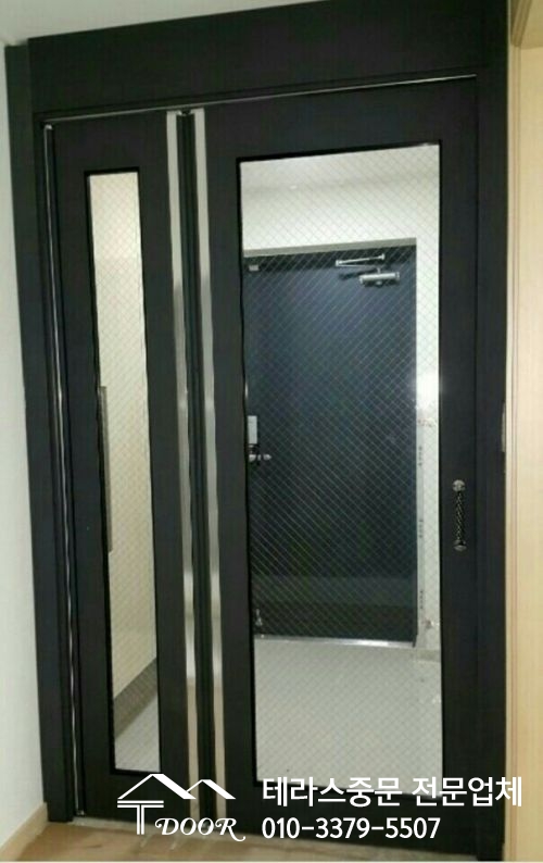 1. MBC 건축박람회에 출품된 블루칼라 스윙&터닝도어 망입유리 현관중문 설치사례입니다.