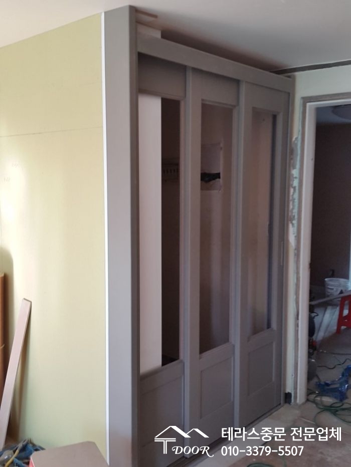 5. 딤 그레이 3연동중문설치공사 및 신발장 리폼 설치공사입니다