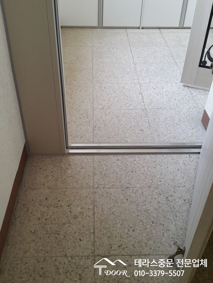 테라스중문 전실확장, 전실이전 및 여닫이문, 신발장 설치공사 사례입니다.