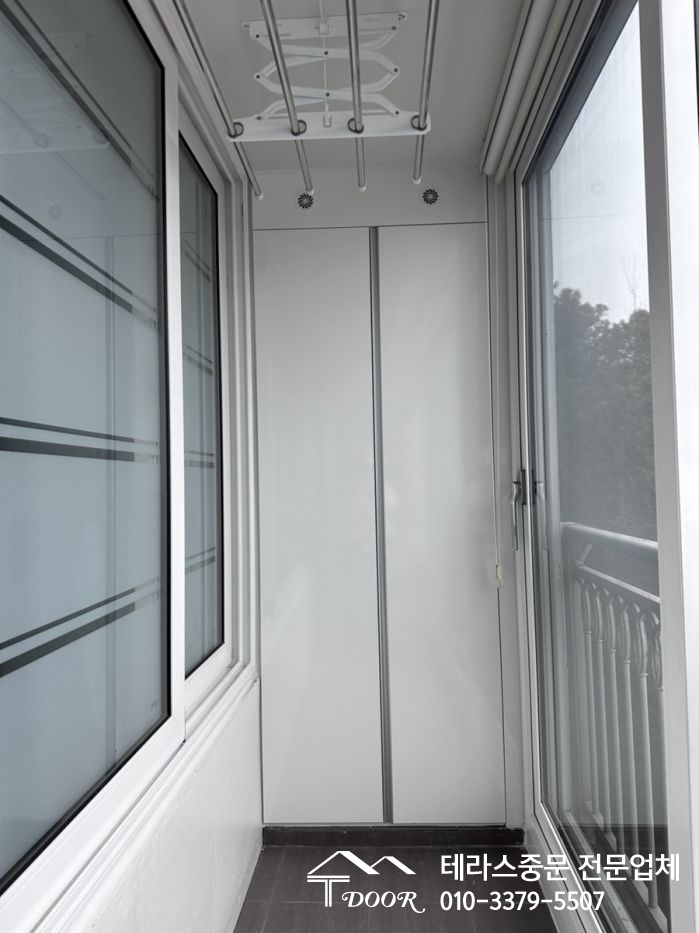 느낌이 있는 아파트 베란다에 창고문 제작했습니다